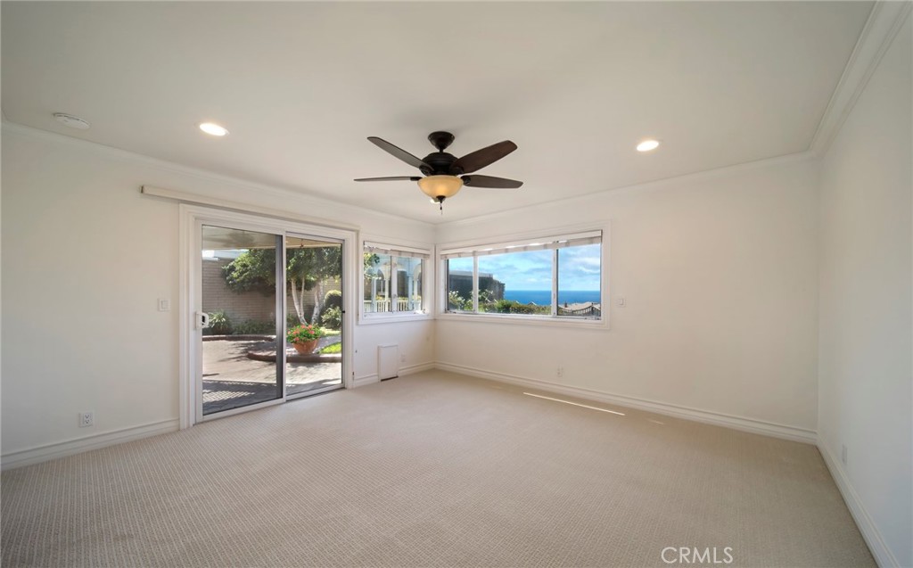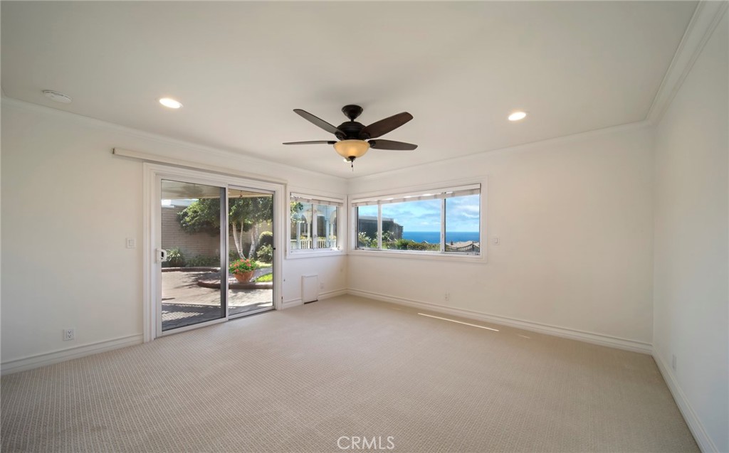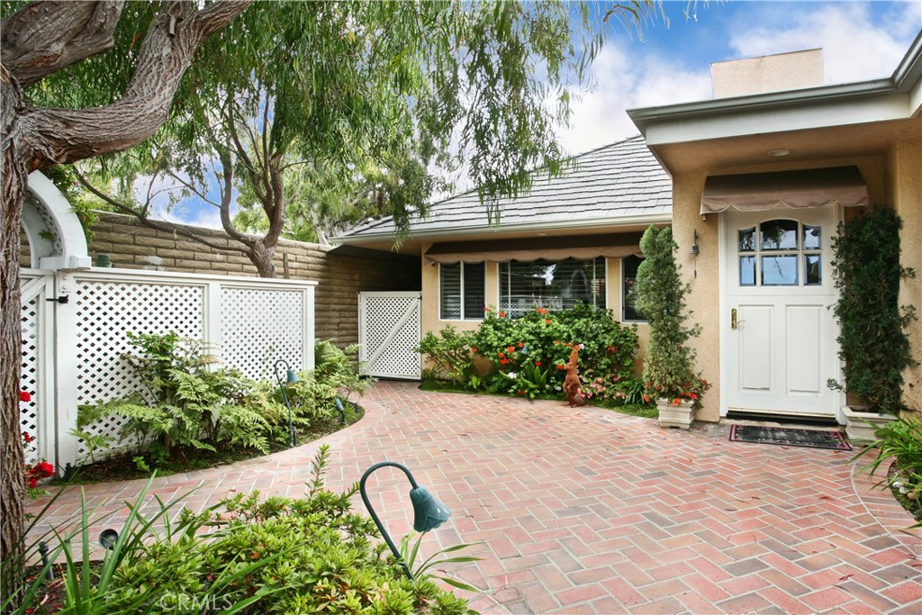 Located on the beachside of Coast Hwy in the 24-hour gated oceanfront community of Niguel Shores, this one-story "BEACH HOUSE" offers the ultimate coastal lifestyle. Perched on a premium cul-de-sac lot, with only 3 homes on this street, this property spotlights a lovely ocean and sunset view, a large front gated courtyard and large back yard with built in BBQ, lush landscape and just minutes to the sandy beach. With ocean views from all main rooms, this home has been expanded with a center fireplace surrounded by family, living and dining areas, an open kitchen concept complete with granite counters and stainless steel appliances, 3 Bedrooms, 2 Baths, large walk-in finished closets, an inside laundry area which leads to the 2-car attached Garage. The primary bedroom opens to the ocean view and garden patio and includes a built-in office work space. Recessed lighting, vaulted ceilings, new paint and carpet, plus lovely brick patio areas highlight the charm of this seaside gem. The spacious back yard is ready for entertaining a crowd or just relaxing in the tranquil setting. Homes in this area and on this street are rarely available. Niguel Shores includes an oceanfront blufftop park and parking lot with direct beach access and a wonderful Clubhouse with pool, spa, pickleball, tennis, sports courts, park and more. The community of Niguel Shores is situated next to the Ritz Carlton Hotel and is minutes close to the Marina at Dana Point, the Waldorf-Astoria Monarch Beach Resort, the Links Golf Course, and to the Art Colony of Laguna Beach. Enjoy the fun and festive beach lifestyle all year around in NIGUEL SHORES...The "Best-Kept" Secret Along The Coast!
