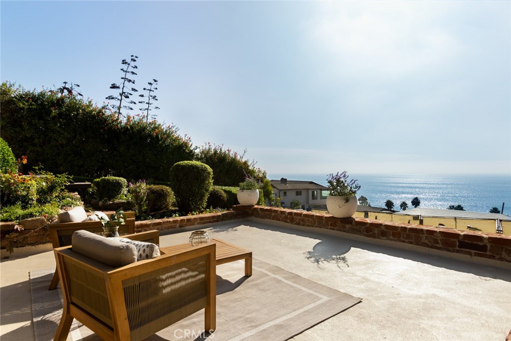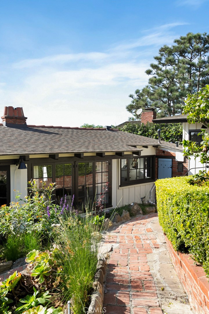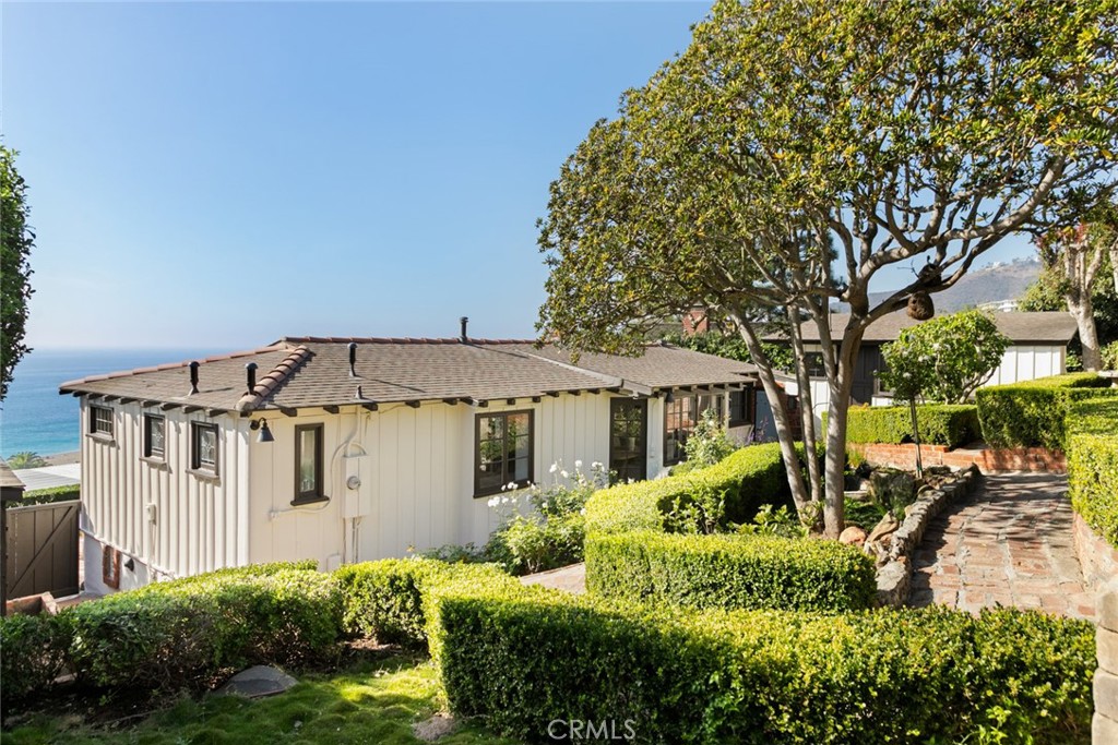 Showcasing panoramic views of breaking waves, the sparkling Pacific Ocean, magnificent sunsets and evening lights along the coastline, this historic 1931 cottage epitomizes quintessential Laguna Beach living. Carefully upgraded with on-trend improvements while maintaining its intrinsic charm, the three-bedroom, two-bath home offers the low-property-tax benefits of California's Mills Act. An impeccably maintained terraced homesite of nearly 6,656 square feet displays handsome brick hardscaping, manicured landscaping and spacious outdoor living areas with ocean views in the front and rear yards. A two-garage offers parking at street level, and two large patios and a covered front porch welcome outdoor entertaining with enchanting views of Aliso Beach and the ocean. Vaulted ceilings with etched wood beams soar over most living spaces, including a fireplace-warmed living room with expansive ocean-view windows and access to the front yard, and a dining room with two French doors opening to the backyard. The kitchen retains the home's cottage vibe while incorporating upgraded stone countertops and stainless steel appliances including a Wolf range. Enjoy casual meals in the ocean-view breakfast nook, or step out to the front patio for morning coffee and hypnotic Pacific vistas. Approximately 1,712 square feet, the open and light residence is richly detailed with hardwood and tile floors, colorful tiles at interior stairs, marble and brass in baths, recessed built-in shelving, solid interior doors and dramatic archways. One bedroom offers the advantage of private outdoor access, and another features a sitting room. Mature gardens are interwoven with brick pathways in the backyard, where ocean views embellish a patio that is perfect for parties and simple relaxation. A sought-after address within South Laguna's Coast Royale neighborhood includes a private pathway to the beach and easy access to endless shopping and dining attractions, world-renowned art galleries, the oceanfront Montage resort, and The Ranch at Laguna Beach, a luxurious resort and golf course in picturesque Aliso Canyon.