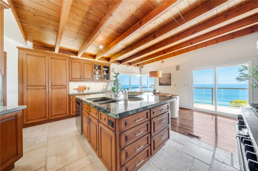 Inside, the home features soaring beamed ceilings in the living room and beautiful hardwood floors that add warmth and character throughout. The kitchen and living areas flow seamlessly to the outdoor spaces, creating an expansive, view-filled space to relax or entertain. The kitchen is a centerpiece for the home - outfitted to encourage your inner chef in an inspriing setting. The primary suite is privately situated and generously sized, with whitewater views that greet you each morning. Open the windows and let the rhythmic sound of crashing waves lull you to sleep.