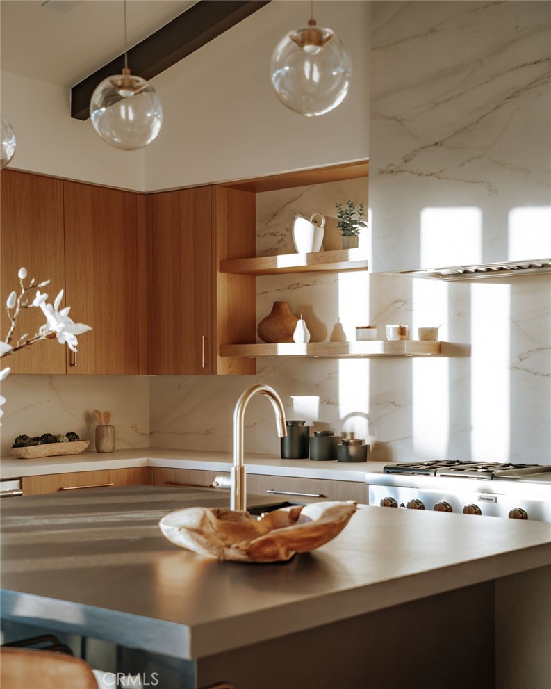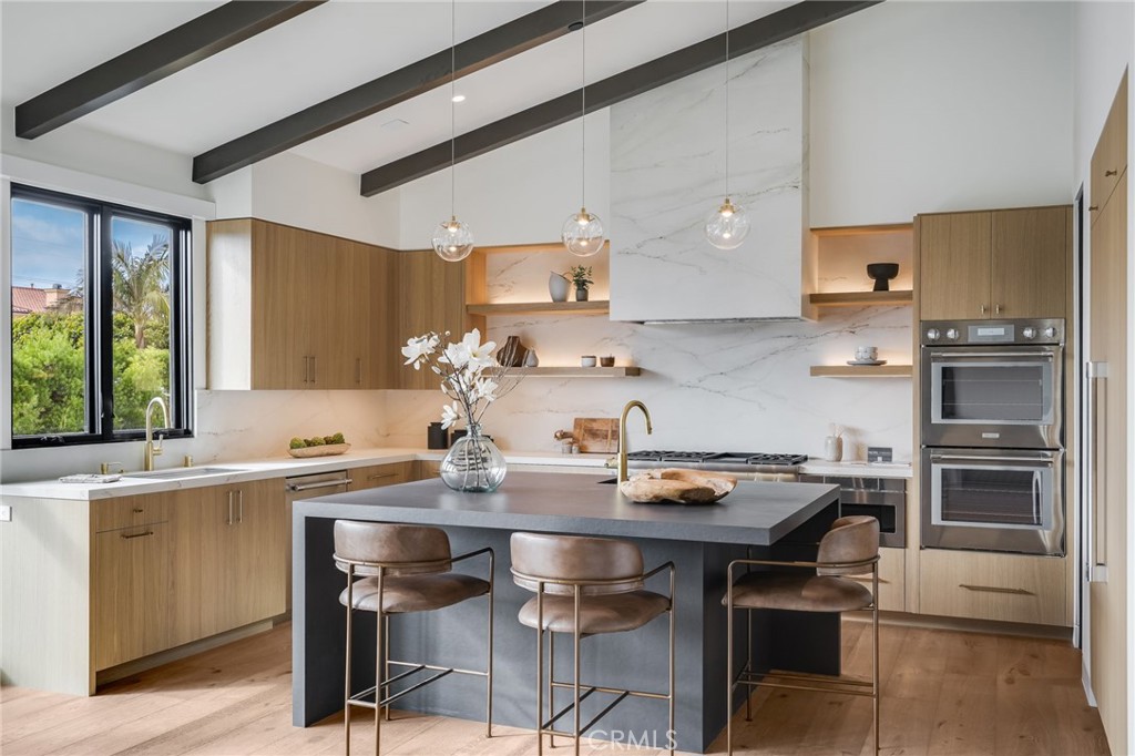 Available now for long-term lease. Be the first to experience this newly constructed, custom-designed modern residence--an exceptional offering that blends architectural sophistication with an inviting sense of home. Set on a rare double-wide parcel, this 6 bedroom, 7 bath estate includes an attached multi-level ADU and is thoughtfully designed to celebrate seamless indoor-outdoor living. From the moment you enter, the home makes a striking yet welcoming impression. Natural materials, soaring ceilings, and expansive walls of glass bathe the interiors in light, creating an atmosphere that feels both contemporary and warm. The open-concept living spaces are anchored by a dramatic two-story limestone fireplace and illuminated by a show-stopping custom chandelier crafted from European hand-blown glass--setting the tone for the exceptional craftsmanship found throughout. At the heart of the home is a beautifully curated kitchen designed for both everyday living and effortless entertaining. An oversized island, sleek Dekton countertops, custom minimalist cabinetry, top-tier chef's appliances, a walk-in pantry, and a fully equipped secondary caterer's kitchen make this space as functional as it is stunning--perfect for intimate dinners or lively gatherings alike. The primary suite is a private sanctuary, featuring dual walk-in closets, a spa-inspired bath designed for total relaxation, and a generous deck ideal for morning coffee or evening unwinding. A floating staircase or custom elevator leads to the lower level, where a secondary living area opens directly to the backyard--an entertainer's dream. Enjoy evenings under the covered loggia, around the fully outfitted bar, or beside the sparkling pool, all surrounded by lush, mature landscaping that offers privacy and tranquility. The attached two-story ADU provides a beautifully appointed, self-contained living space--ideal for extended family, guests, live-in staff, or multigenerational living. Located in the heart of Newport Heights, this exceptional home places you moments from Newport Beach's award-winning schools, world-renowned beaches, and an array of celebrated dining, shopping, and coastal amenities. A rare opportunity to lease--or own--a truly special modern retreat in one of the area's most desirable neighborhoods.