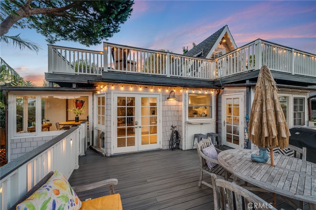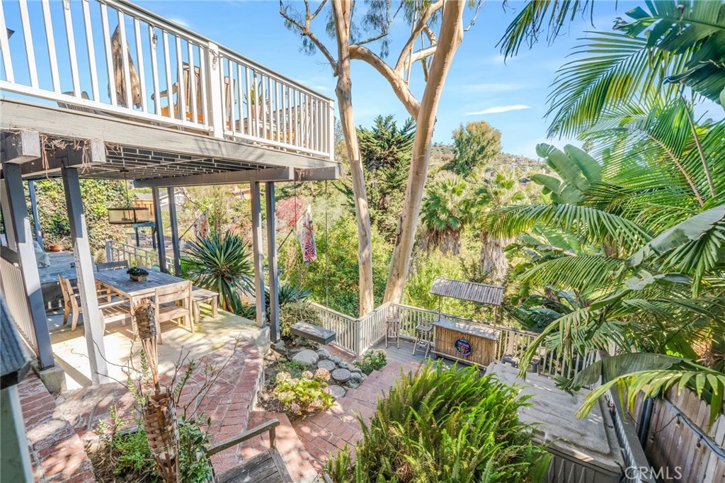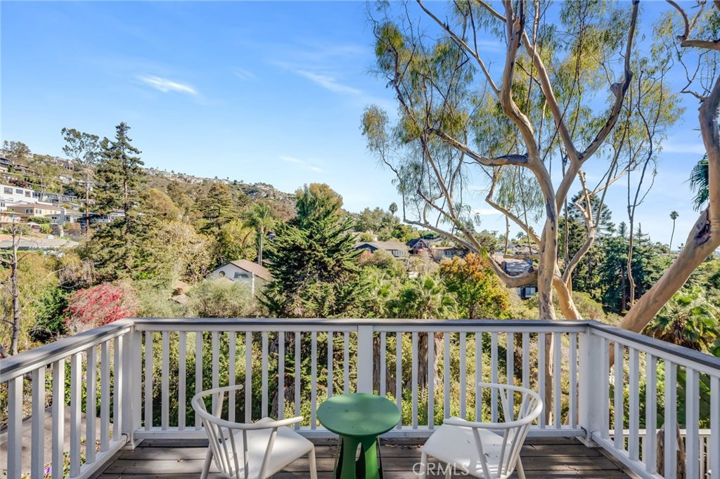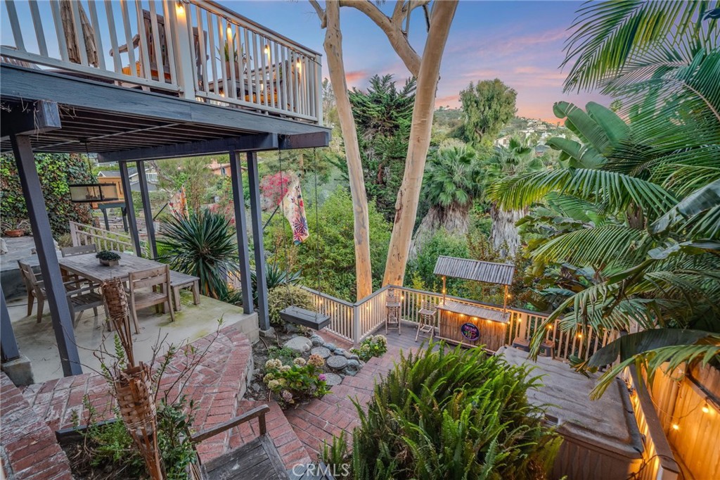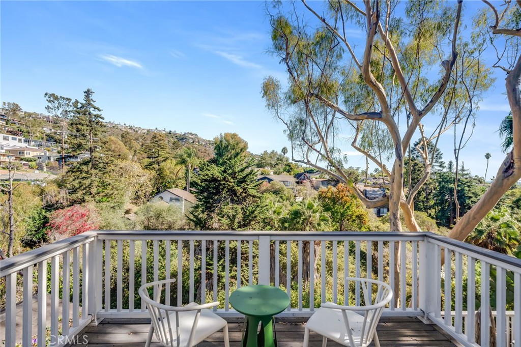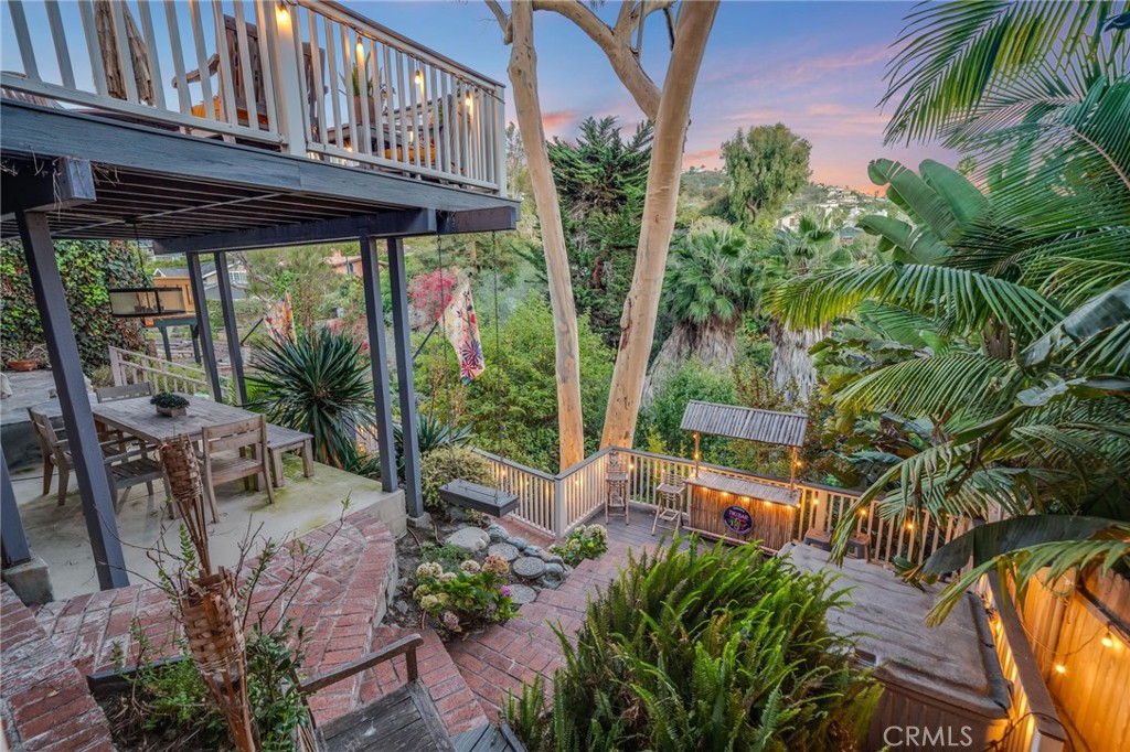 Bathed in natural light and rich with character, this perfectly-located storybook home blends classic craftsmanship with coastal charm. Hardwood floors, vaulted ceilings, and thoughtful design details create an inviting sense of place. This is a home that invites you to settle in and enjoy your day. Set on a generous lot, the property offers no less than four private decks, including a lower-level retreat with a spa - perfect for unwinding or entertaining. Every corner of the home feels designed to celebrate the Laguna lifestyle, from morning coffee in the sunshine to evening gatherings under the stars. A modern kitchen with high end appliances and beautifully updated baths complements the welcoming charm of the home. The location provides immense privacy, overlooking the beautiful lower 'saddle' of Bluebird Canyon providing little moments of joy wherever you look. Located just a few quiet blocks from Bluebird Park and some of Laguna's most beloved local beaches, 559 Calliope is ready to welcome its next thoughtful steward.