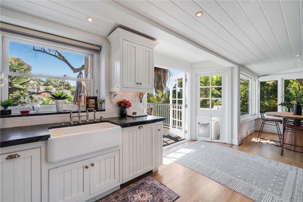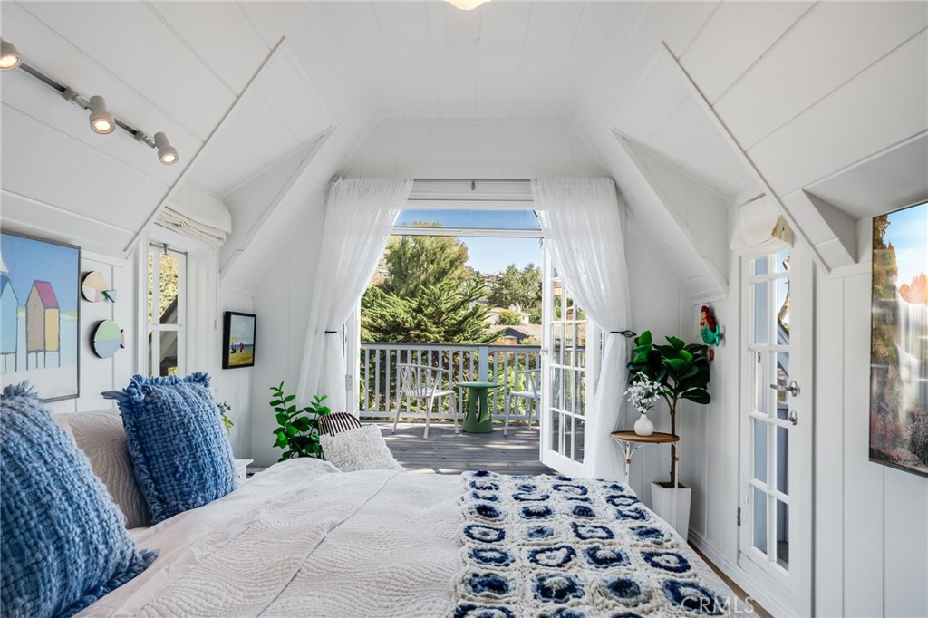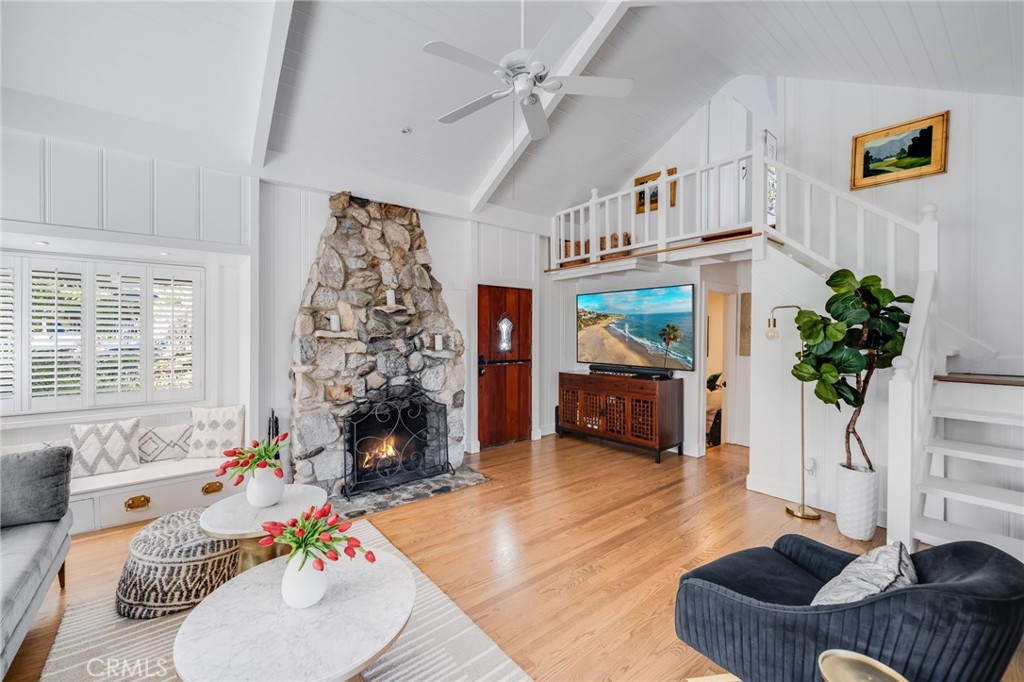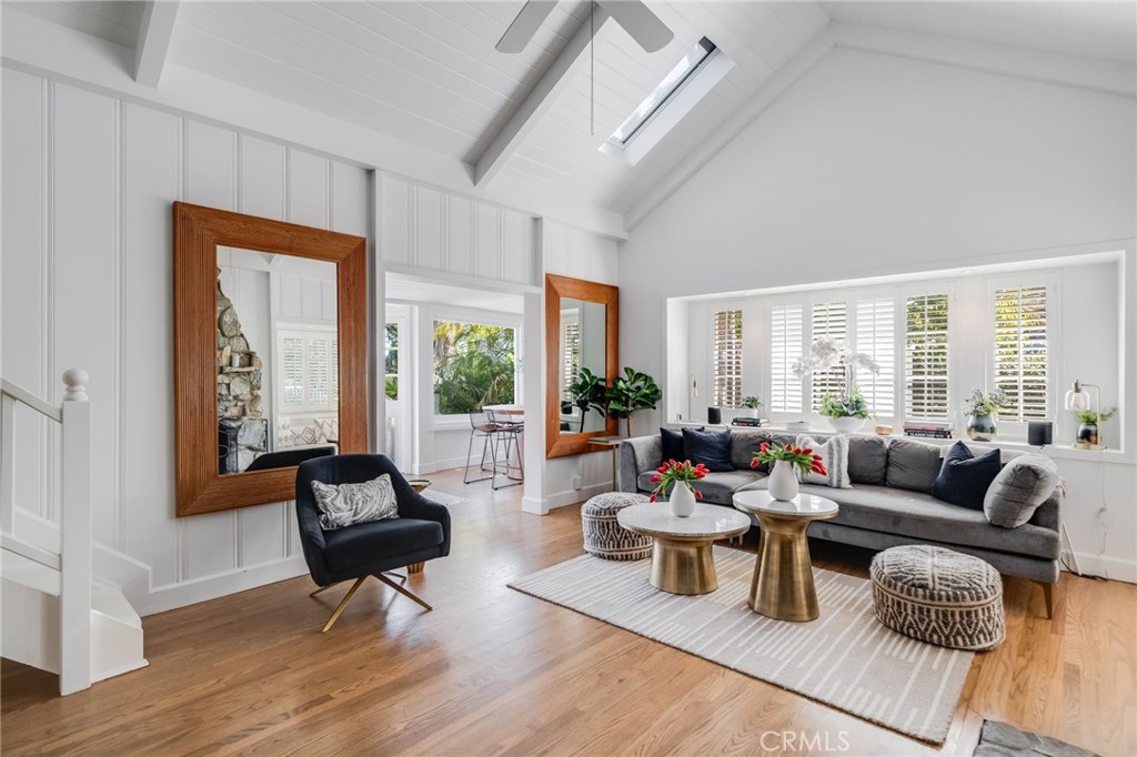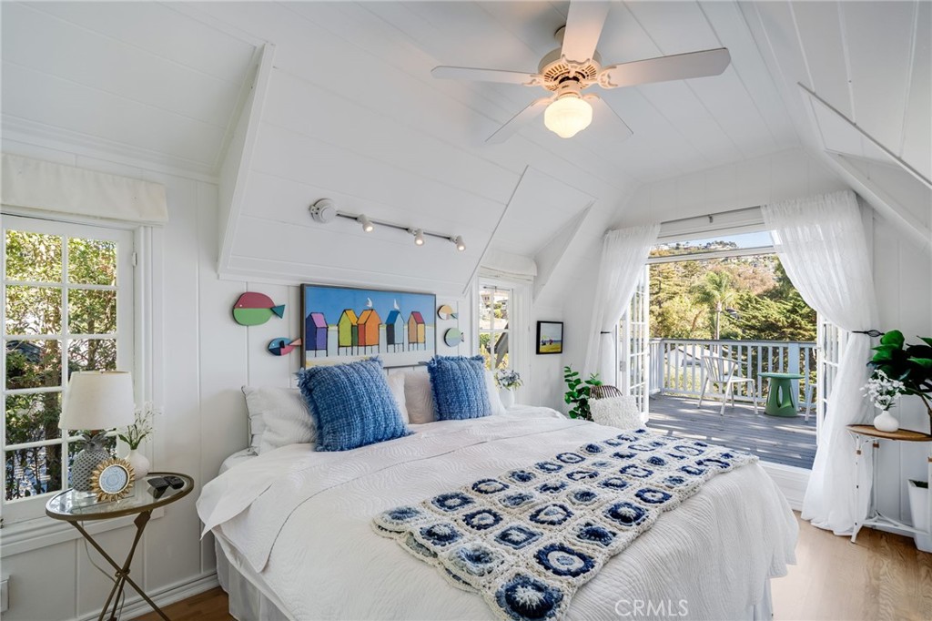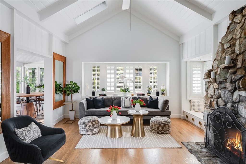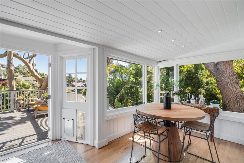 Bathed in natural light and rich with character, this perfectly-located storybook home blends classic craftsmanship with coastal charm. Hardwood floors, vaulted ceilings, and thoughtful design details create an inviting sense of place. This is a home that invites you to settle in and enjoy your day. Set on a generous lot, the property offers no less than four private decks, including a lower-level retreat with a spa - perfect for unwinding or entertaining. Every corner of the home feels designed to celebrate the Laguna lifestyle, from morning coffee in the sunshine to evening gatherings under the stars. A modern kitchen with high end appliances and beautifully updated baths complements the welcoming charm of the home. The location provides immense privacy, overlooking the beautiful lower 'saddle' of Bluebird Canyon providing little moments of joy wherever you look. Located just a few quiet blocks from Bluebird Park and some of Laguna's most beloved local beaches, 559 Calliope is ready to welcome its next thoughtful steward.