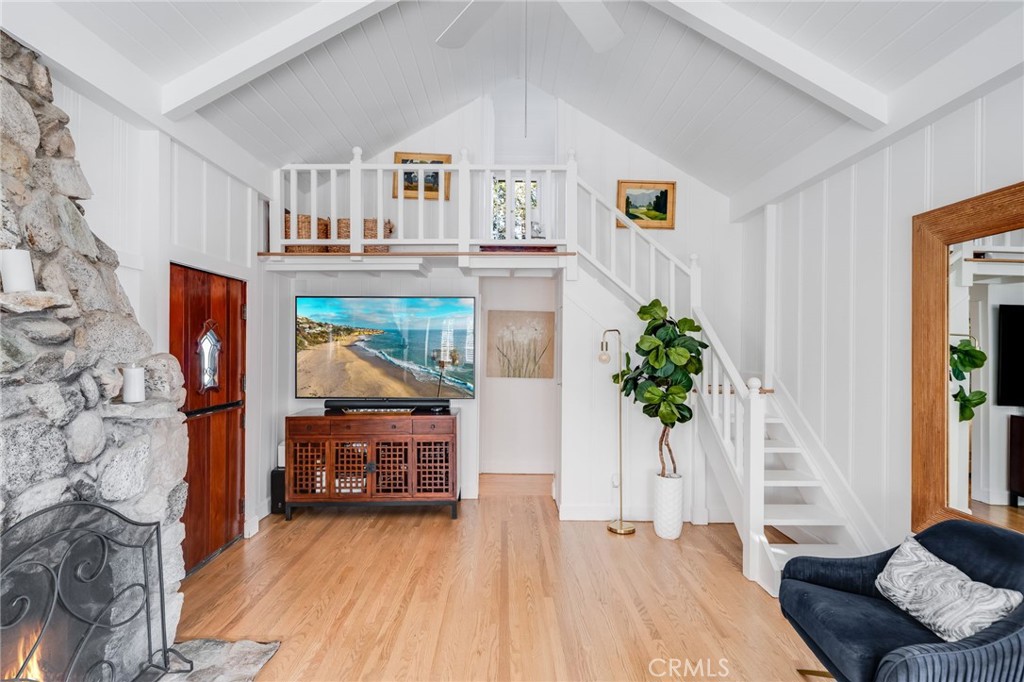 • Other Interior Features: Beamed Ceilings, Built-in Features, Balcony, Bedroom on Main Level